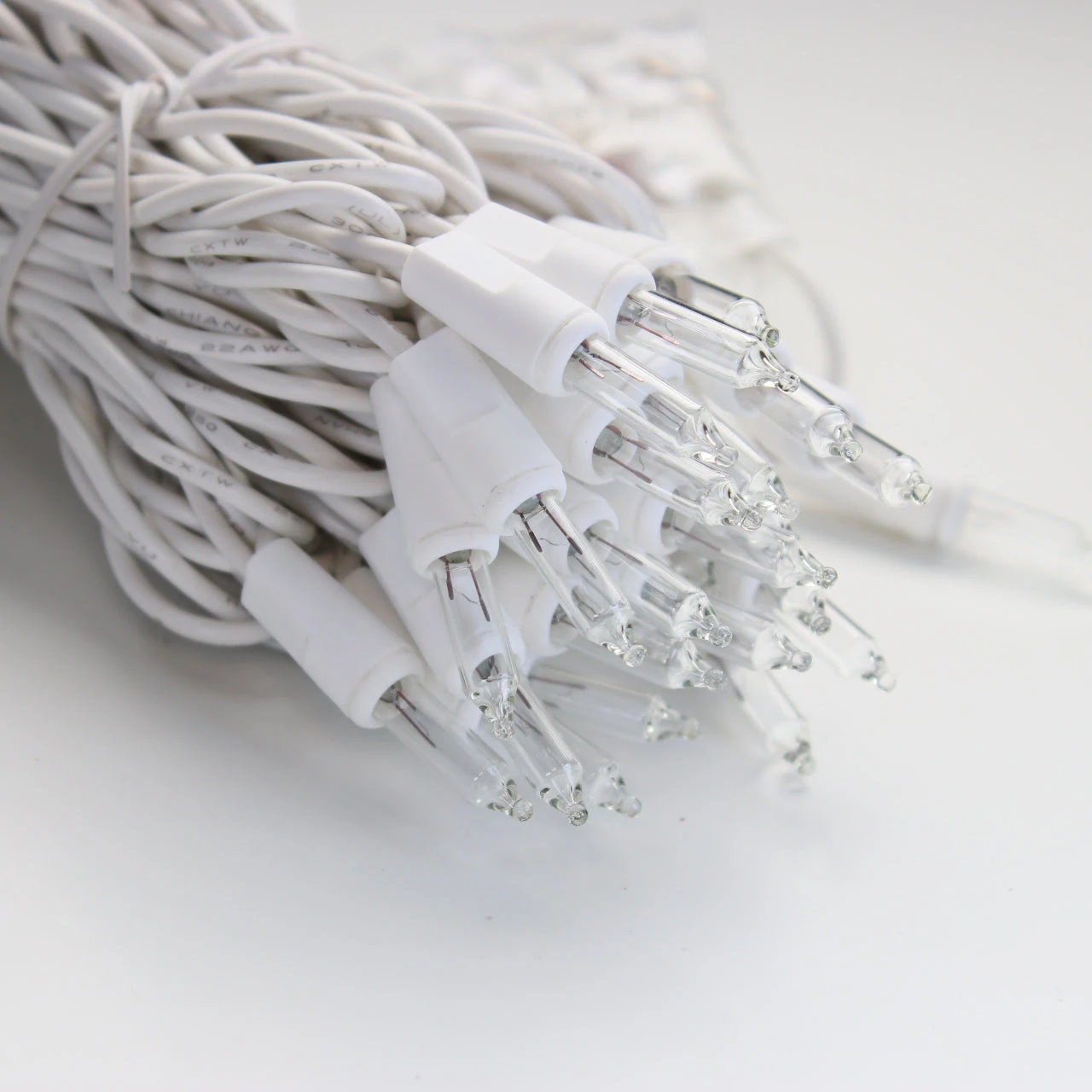 Your home will glow brightly with these white Christmas lights on white wire. They are one of the most versatile products for all-year use in your home. Holidays and special occasions will benefit from the beauty and sparkle of these Christmas lights on white wire. The 6-inch spacing is ideal for wrapping trees and columns. Each string of lights has 100 clear bulbs with just over 51-inches of length.
