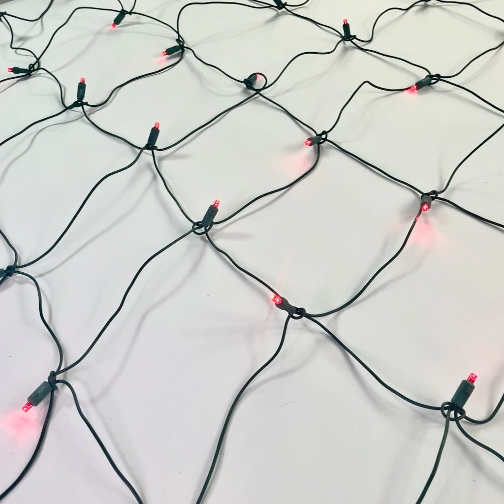 One of the easiest light sets to use, this 4 foot by 6 foot illuminated blanket can have your outdoor shrubs covered in a very short time. The green wiring blends in with your greenery while the 5mm lenses equally spaced across your landscaping provide gorgeous lighting. With the ability to connect 43 sets end to end you won’t need as many extension cords. Consider alternating red net lights with white net lights to create a candy cane effect. Wrap the net lights around your trees and your lawn magically becomes a candy cane forest! For year-round use, red net lights will create a special atmosphere for romantic Valentine’s Day dinners. When combined with our blue and white net lights, your patriotic celebrations will sparkle. LED net lights are both energy-efficient and weather-resistant. Consider purchasing them in many colors for all your holidays and celebrations.