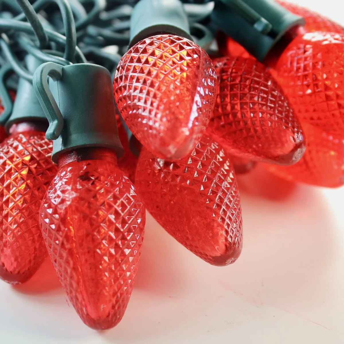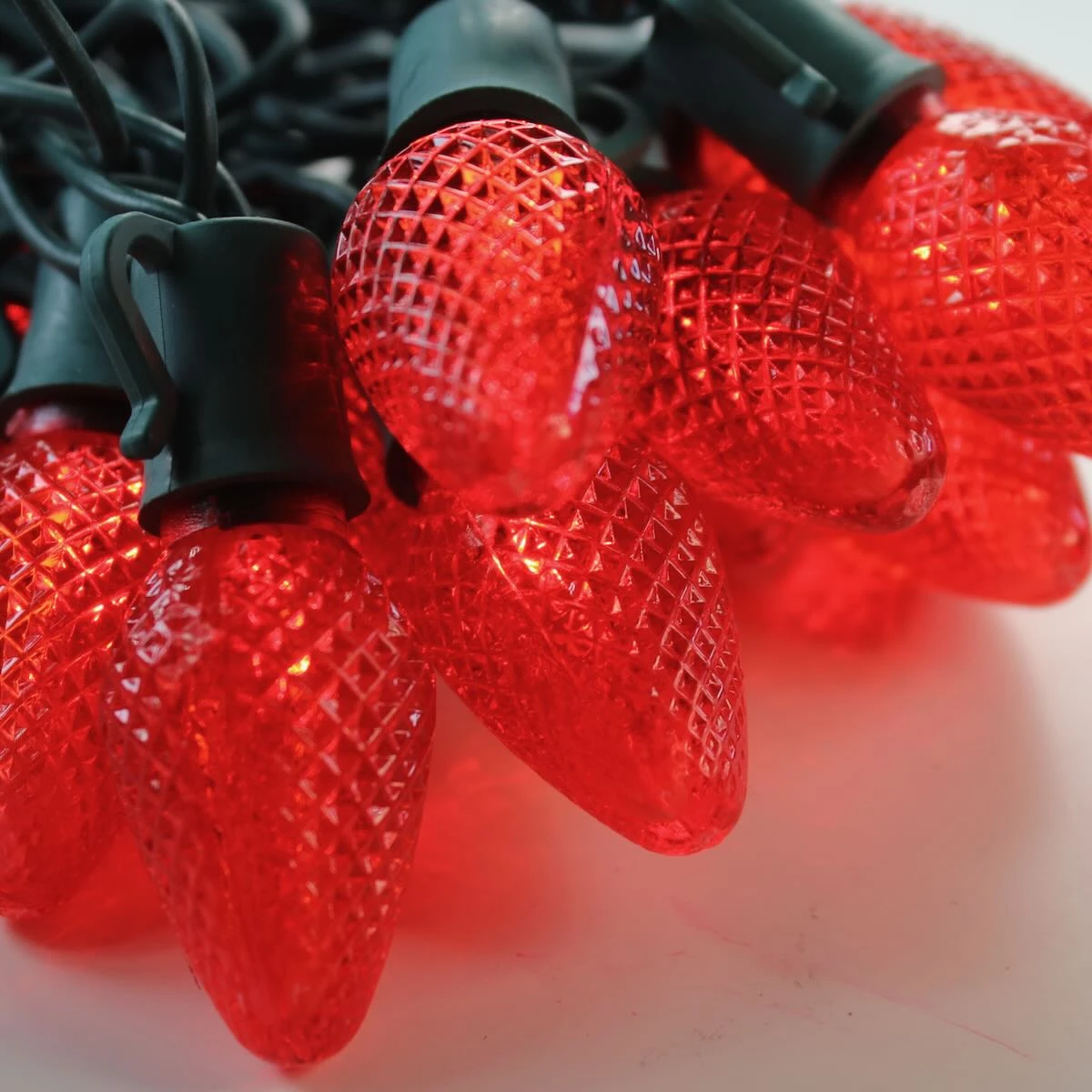 These LED light strings are constructed with a 3-wire 22-AWG low-current wiring harness. The C7 lenses are sealed into their bases making them moisture resistant.