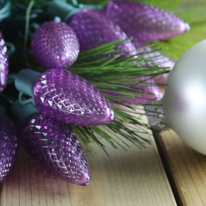 These electric purple C9 string lights are plug-and-play. Made with a 3-wire harness, up to 87 sets of lights can be run in series.