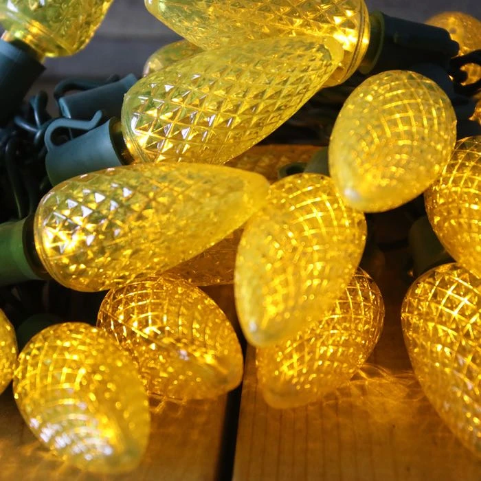 50-light 5mm Yellow LED Christmas Lights, 4″ Spacing Green Wire