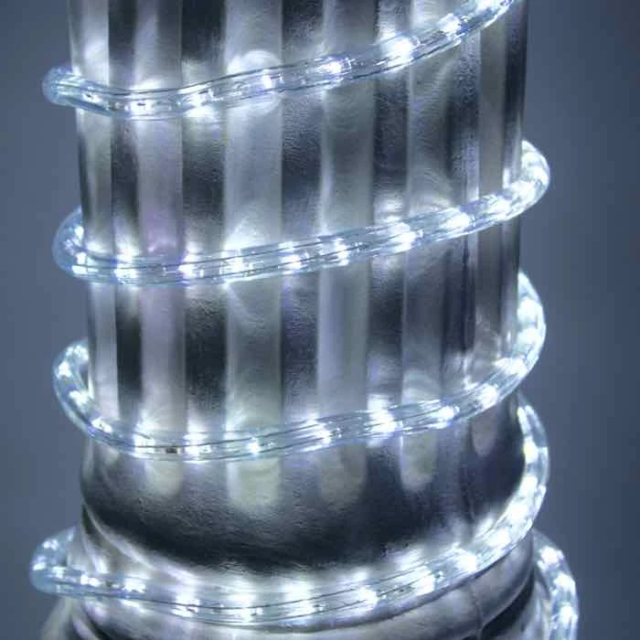 Customize lengths of rope light by cutting only at cut marks located every 54 inches along the rope.