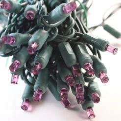 50-light G12 Purple LED Christmas Lights, 4″ Spacing Green Wire
