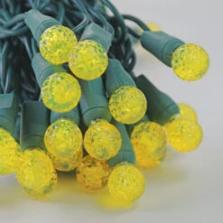 50-light G12 Yellow LED Christmas Lights, 4″ Spacing Green Wire