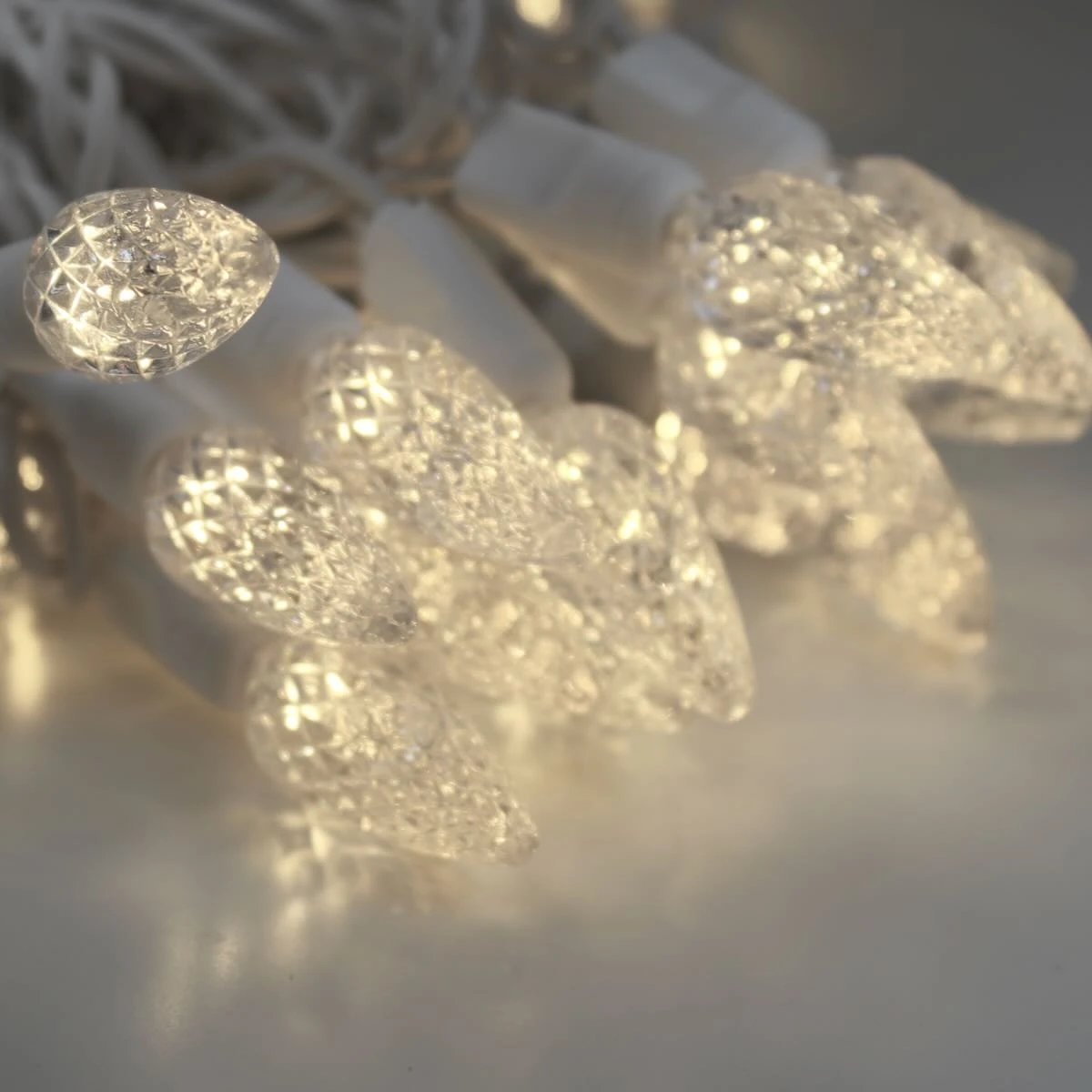 50-light 5mm Warm White LED Christmas Lights, 6″ Spacing White Wire
