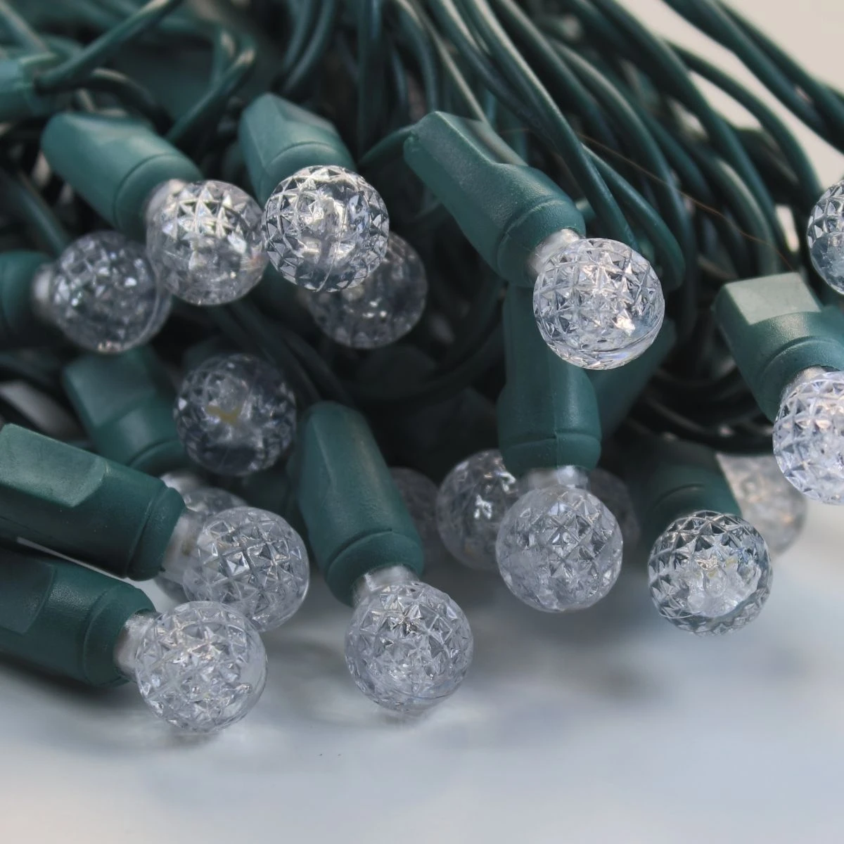 These light sets (also known as G12 or Spherical) feature LEDs that are 4 inches apart, have plugs and up to 43 sets can be run in series. Think of how much you can decorate before you have to run a second extension cord or splitter!