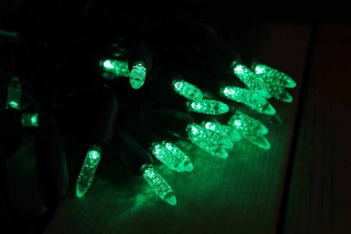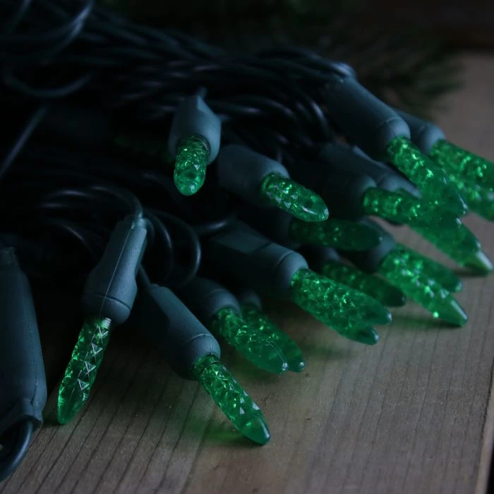 50-light M5 Warm White LED Christmas Lights, 6″ Spacing Green Wire