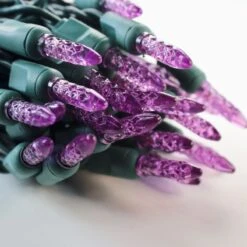 50-light M5 Purple LED Christmas Lights, 4″ Spacing Green Wire