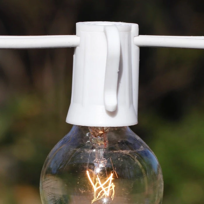 This 100-foot cord has 100 sockets spaced 12 inches apart and looks stunning when matched with either traditional glass (incandescent) or LED bulbs. Note, our 100-foot cords are shipped without a female end plug. Instead of running these cords in series if you are lighting over 100 linear feet of lights, we suggest that you “T” out from the splitter on the end of a commercial-grade extension cord or use a splitter. Consult with a master electrician for all electrical questions and assistance.