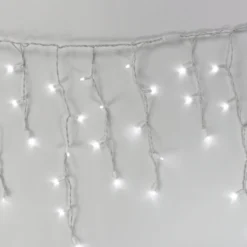 100-light M5 Warm White Twinkle LED Icicle Lights, White Wire
