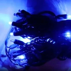 50-light 5mm Blue Strobe LED Christmas Lights, Green Wire 4″ Spacing
