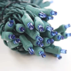 50-light 5mm Blue Strobe LED Christmas Lights, Green Wire 4″ Spacing